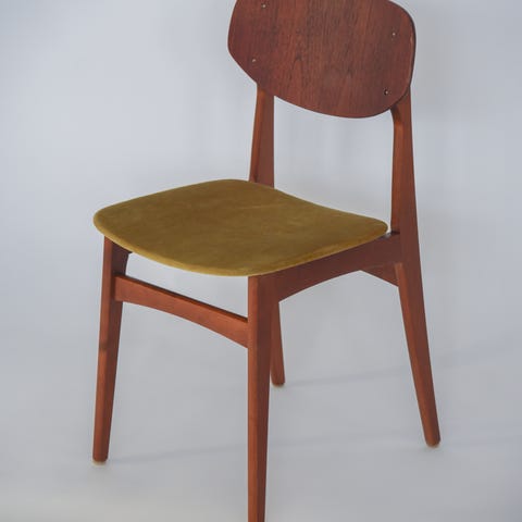 Vintage Asko 2027 kolmijalkainen tuoli, jonka on suunnitellut Ilmari Lappalainen vuonna 1956. Hyvässä vintagekunnossa, pientä patinaa löytyy.