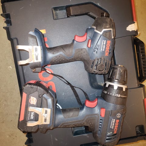 Bosch PSR 18V ruuvinväännin, jossa 18 V jännite. Mukana laturi ja 2 kpl akku.