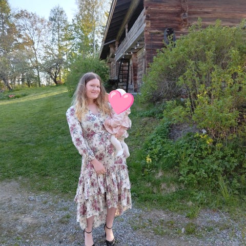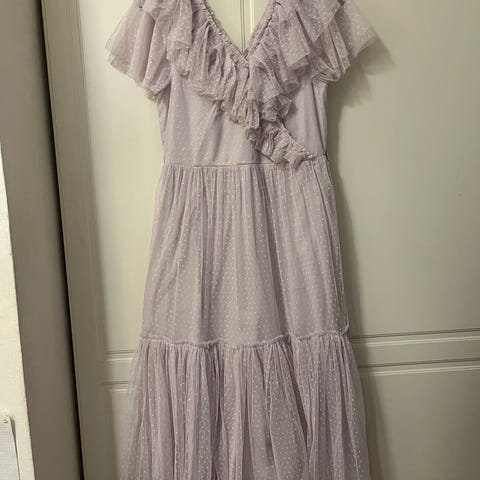 Newbie juhlamekko, koko S. Mekossa on aivan ihana kukkakuosi ja siinä on pientä kohokirjailua. Mekolla onnistuu imetys ja koko on reilu S, menee myös ainakin pienelle M-koolle. Hihat on läpikuultavaa sifonkia, samoin kuin mekon päällikangas muualtakin.
