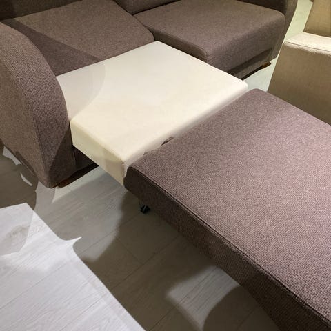 Sotkasta aikanaan ostettu vuodesohva (Denver?). Helppo mekanismi sekä vuodevaatelaatikko.190x120 levitettynä. Istuin ja selkänoja taitettuna n.50cm. Istuimessa, tyynyn kohdilla jäänyt joku mehutahra. Ollut lastenhuoneessa vieraspetinä. Ei kotieläimiä kodissa. Hp.50e