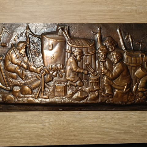 Kalasääski Tekstiilityö/taulu, noin -70-80luvulta.