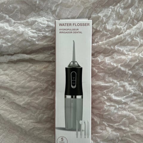 Prismasta ostettu water flosser hammasvälien ja suun puhdistukseen. ovh 29,99€ Kerran kokeiltu. Sisältää 2 muovipäätä, josta toinen käyttämätön ja avaamaton ja toista kerran kokeiltu.