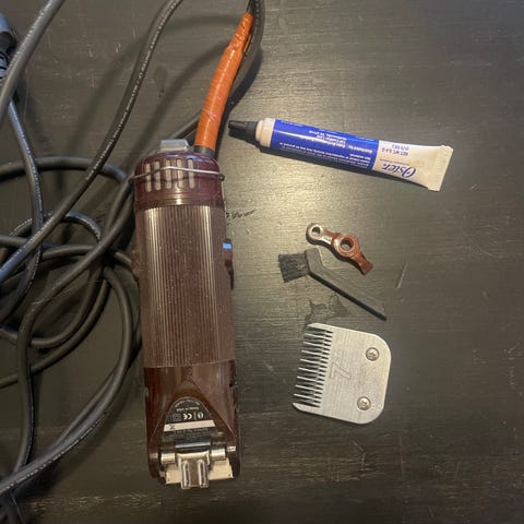 Myydään trimmauskone. Päälle lähtee. Viimeksi käytetty n.8v sitten, sen jälkeen ollut käyttämättömänä, koska ei ole ollut kohdetta enää. Silloin toiminut erittäin hyvin, mukana trimmausterä n:o 7, joka trimmasi pehmeää karvaa hyvin ja oletettavasti tuolla terällä pystyy vielä ajelemaan. Mukana hiilet, jonkin verran vanhoja vielä jäljellä, öljyäkin tuubissa vielä, puhdistusharjoja.. puhdistelen konetta vielä, mutta saattaa sisältää mustaa karvaa jonkin verran🙂 koneella siis ikää jo melko paljon, joten toimintavarmuutta pidemmäksi aikaa ei pysty lupailemaan. Aikoinansa maksoi 200€ kieppeillä.