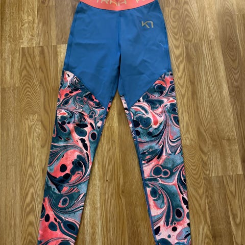 Karitraa trikoot,polyamidi elastine, leveä kuminauha vyötärö. Hyvä kunto,takana vyötärössä pieni nirhauma,ei reikää ei purkaudu, viimeinen kuva. Liukas materiaali. 15e +lähetys.