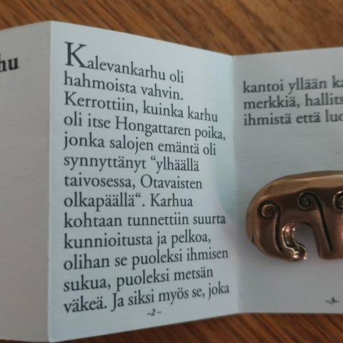 2 pronssista Kalevan karhu-riipusta