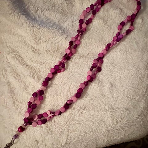 Myydään laadukkaaseen koruvaijeriin tehdyt avainkaulakorut, joissa lasihelmiä. Pituus näkyy toisessa kuvassa. 10€/kpl tai molemmat 18€. Voin lähettää pk:ja vastaan.