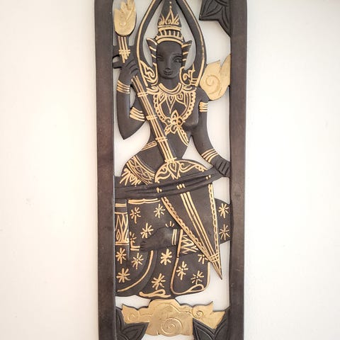 Myydään vanha seinäkoriste, ei ole puuta vaikka siltä näyttää. Ripustuslenkki takana. Kunto hyvä, muutama pieni kolhu. Mitat 18,5 x 9,5 cm. Tarjoa!