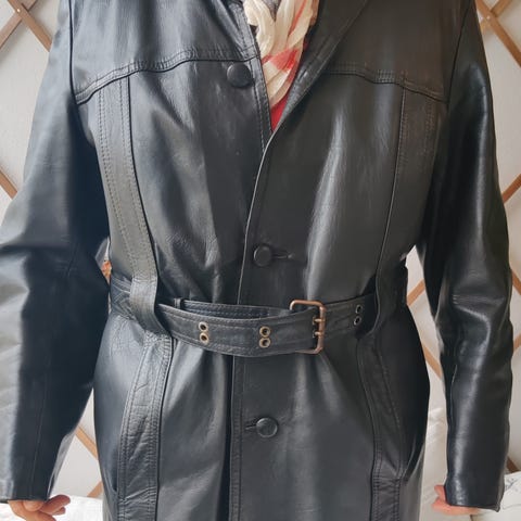 Takki, nahkaa, karvakaulus, teddykarvavuori,, 52, 1/2 pitkä,