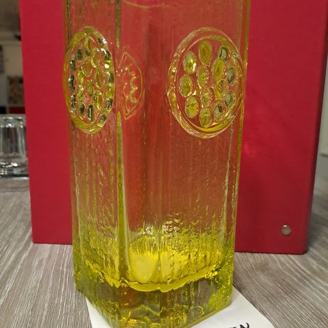 Tamara Aladinin vuonna 1967 Riihimäen Lasi Oy:lle suunnittelema Rondella-maljakko.