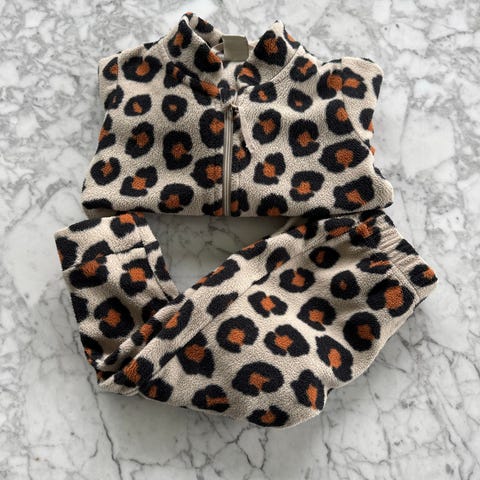 Lindex suloinen kettu aiheinen asu, jossa huppari ja housut. Peuhu fleecehaalari.