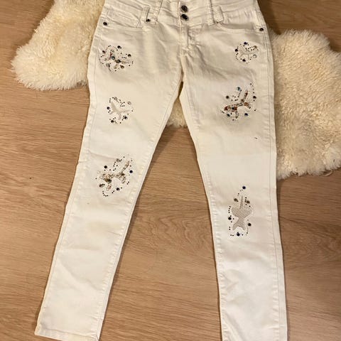 Weekdayn luonnonvalkoiset farkut, koko 30/30. Jämäkät, 100% puuvillaa. Muuten oikein hyvässä kunnossa (ei kulumaa), mutta herkästä väristä johtuen lahkeen takaosassa pientä jälkeä.