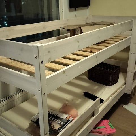 Puinen kerrossänky tikkailla