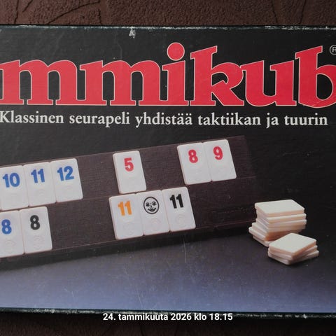Hyvässä kunnossa oleva ja vähän pelattu Rummikub. Kaikki nappulat ja laudat tallessa.