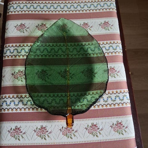 Hyvin kaunis lehti lautanen. Pituus noin 16,5 cm ja leveys noin 11,5 cm. Ehjä kuvien mukainen siisti kunto