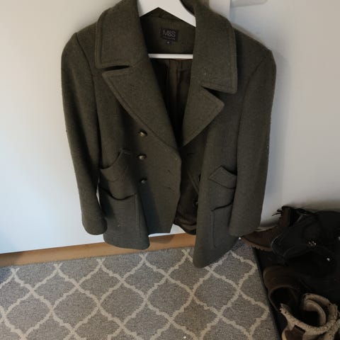 Myydään Zarina-merkkinen naisten kevättakki; materiaali 30 % villaa ja polyesteriä, vuori silkkiä, neljä taskua, kunto kuvia vastaava.