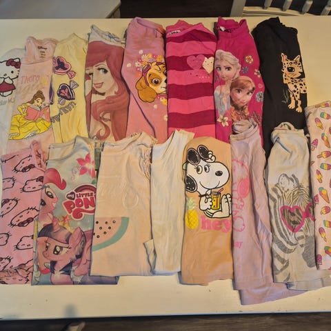 21 kappaletta housuja ja shortseja tytölle koossa 122/128cm sekä lämmin fleecehaalari.