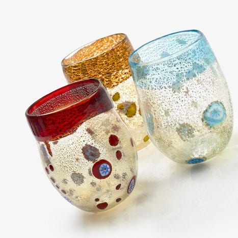 Upea "BOTTICELLI"-vesilasisarja: täydellinen myös tequilalle: Kuusi eri Muranon väriä. Upea esimerkki käsintehdyistä Muranon laseista. Nämä kirkkaat värit luovat täydellisen tunnelman iloiseen kokoontumiseen ystävien kanssa. Kaikki lasimme näyttävät samanlaisilta, mutta jokainen kappale on erilainen, mikä tarkoittaa, että ne ovat ainutlaatuisia. Kierrätämme lasia Muranon lasitehtaasta: lasimme valmistetaan keittämällä Muranossa valmistettujen maljakoiden ylijäämätuotteita. Upea "Miro"-vesi- ja tequilalasisarja. Kuusi eri Muranon väriä. Kaunis esimerkki Muranon käsityöläisten työstä. Eloisat värit luovat iloisen tunnelman arkeen ja juhlapöytään. Valmistusmenetelmä on suupuhallettu, käsintehty.Nämä tuotteet vastaavat kestävän kehityksen ja ympäristövaikutuksiemme suhteen yhä tietoisemman asiakaskunnan tarpeisiin. Ne valmistetaan Muranon uunissa valmistettujen maljakoiden kierrätyslasista.Lasit ovat kestäviä ja ne voi pestä astianpesukoneessa. Ei massatuotantoa.