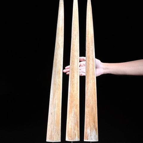 Ei lähtöhintaa - upea pari miekkakalan nokkaa räätälöidyillä jalustoilla.