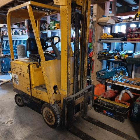 Sähkötrukki myynnissä. Akut alkavat olla vaihtokunnossa, mutta trukki toimii vielä. Mukaan tulee kahdet nastarenkaat. Tee tarjous, jos hinta tuntuu liian korkealta. 😊