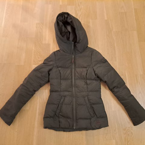 H&M Talvitakki naisille koossa 38. Takki on vihreä ja valmistettu puuvillasta. Mallissa on huppu, jossa tekoturkisreunus. Sen saa irti. Takissa on kiristysnyörit vyötäröllä ja edessä painonapit sekä vetoketju. Soveltuu kylmempään säähän.