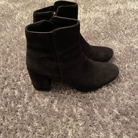 Kengät on helppo laittaa jalkaan. Kengissä on jonkun verran korkoa. Joitakin jälkiä tullut säilytyksessä, mutta kengät ovat muuten ehjät.