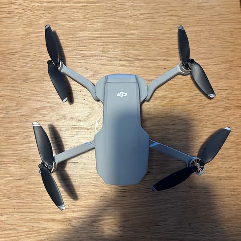 DJI Mavic Mini drone, harmaa väri. Mukana kantolaukku, ohjain, laturi ja 2 akkua.