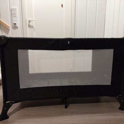 vain muutaman kerran käytetty matkasänky ja patja.