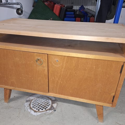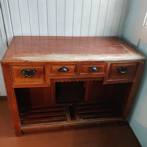 Kiinalainen kaappi sisältä puunvärinen tukevaa tekoa.