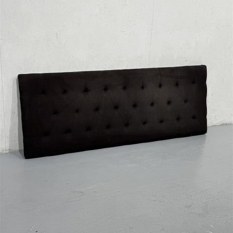Ellokselta ostettu seinäänkiinnitettävä harmaa sängynpääty pehmeällä samettisella kankaalla. Meillä palvellut ilman että kiinnitetty seinään :)