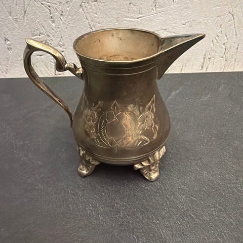 Made in Italy. Messinkipinnoite, pohjassa merkintä 95-100. korkeus 18cm, suurin leveys 12cm. Pikkuisen ajan patinaa. Kunto kuitenkin aivan hyvä. Nouto tai postikulut ostajalle.