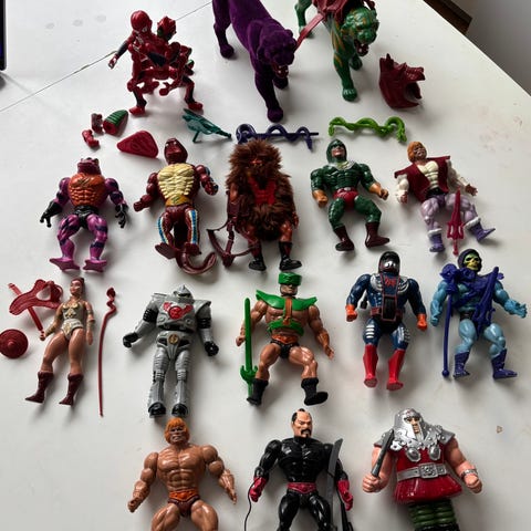 Motu He-Man toimintahahmot vuodelta 1981. Ehjiä, nivelet toimii. King Hiss vuodelta -85.