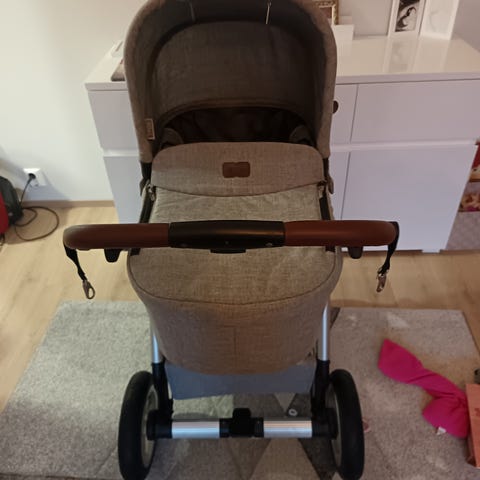 2023 vuonna valmistetut yhdistelmävaunut, kaukalo ja telakka seuraavalle matkustajalle. Kaikissa kankaat ehjät ja siistit. Ainoa näkyvä kuluma on työntöaisasta lähtenyt pinta, näkyy kuvissa ja laitettiin tuommoiset irrotettavat kahvansuojat piilottamaan kuluman.