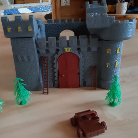 Myynnissä puinen linna. Hyvä kunto, vaikka näkyykin käytönjälkeä. Kuitenkin siisti ja ehjä. Riippusiltaovi puuttuu.