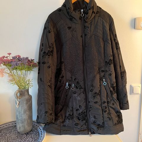 Myydään muutaman kerran päällä ollut ihana hopeanhohtoinen talvitakki. Kivana yksityiskohtana teksti vetoketjun vieressä.