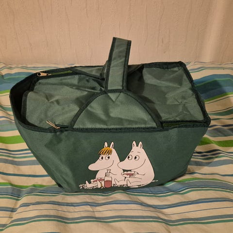 Uudet käyttämättömät muumi kassi ja patakinnas, koko paketti 30,