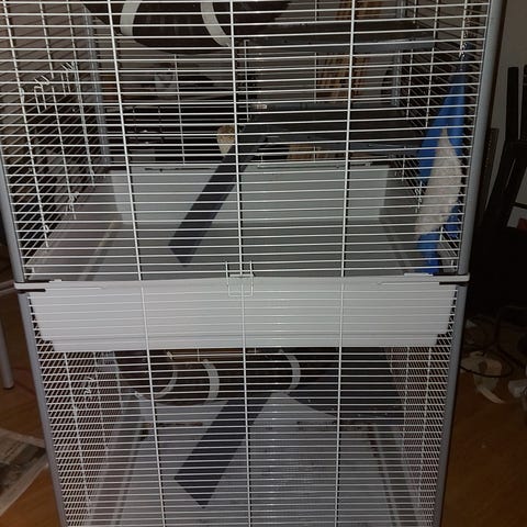 Ollut todella lyhyen ajan käytössä rotilla. Pieniä teipin liimajäämiä voi löytyä ulkoisesti , mutta ei vaikuta käyttöön. Tasot ehjät, tasoja 7kpl. Tasojen paikkaa voi vaihdella oman maun mukaan. Ovh 174e. Myydään koottuna ja pestynä.