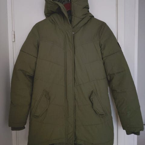 Everestin tummanvihreä toppatakki. Käytetty tosi vähän, joten hyvässä kunnossa. Taskusta esiin käännettävät heijastimetkin löytyivät vasta nyt myyntiinlaitossa. Pesty ensimmäisen kerran myyntiä varten, edelleen tosi muhkea. Väri on kuultava tummanvihreä, kyljissä yksityiskohtana kanttinauhaa. Huppu irrotettava, vetoketju aukeaa myös alhaalta. Koko 158, vastaa hyvin kokoa xxs. Kulkeutuu Seinäjoelle.
