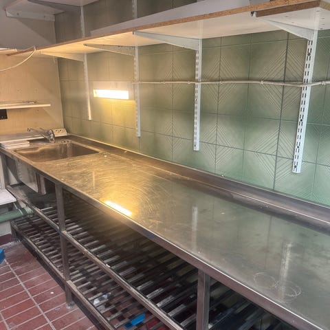 Hyvä, säädettävillä jaloilla varutettu iso metallipöytä myydään tarpeettomana.