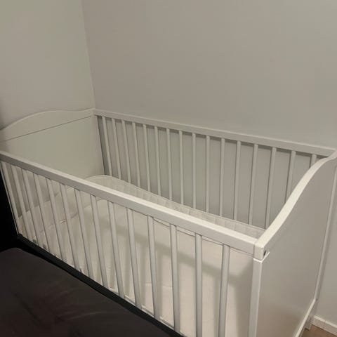 Ikean pinnasänky, hyvässä kunnossa mutta maalissa pientä kulumaa. Ei näy käytössä juurikaan. Mukaan halutessa patja ja reunapehmuste.