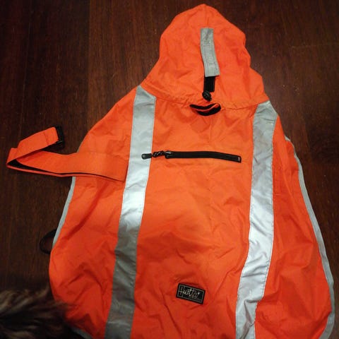hurtta rain blocker sadetakki / sadehaalari etulahkeilla värissä stream. ostettu käytettynä ja käytetty pennulla jonkun aikaa. muuten hienossa kunnossa, sisäpuolelta yhdestä kohtaa teippaus hieman repsottaa (vika kuva). koko 45cm.
