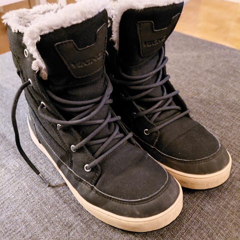 Hyväkuntoiset talvikengät koko 38, pohja 24,5 cm. Kenkiä käytetty yksi talvi, joten on vielä lämpöarvoa ja pitävät vettä.