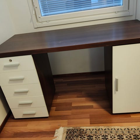 Myyn upouuden pöydän, jota ei ole koskaan koottu tai käytetty. Ostin sen, mutta se ei sopinut pohjaratkaisuuni, joten myyn sen. Pakkausta ei ole avattu. Sopii kotiin, asuntoon, mökille tai toimistoon. Työpöytä, voidaan käyttää myös ruokapöytänä. Koko: 120 × 60 × 75 cm Väri: luonnonpuu Kaikki sisältyy toimitukseen, valmistajan ohjeiden mukaisesti Voidaan noutaa heti