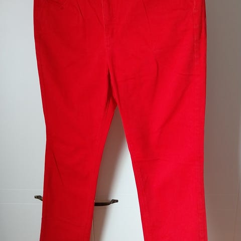 Kuminauhavyötärö venyttämättä 39 cm, sisälahkeen pituus 75 cm. Taskut on. Virheetön kunto.