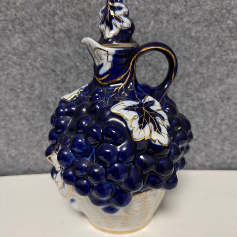Lomonosov viinimarja keraaminen koriste-esine, jossa on tummansininen lasitus ja koristeena viinimarjanlehti. Valmistettu keraamisesta materiaalista. Tuote on valmistettu Neuvostoliitossa (USSR).