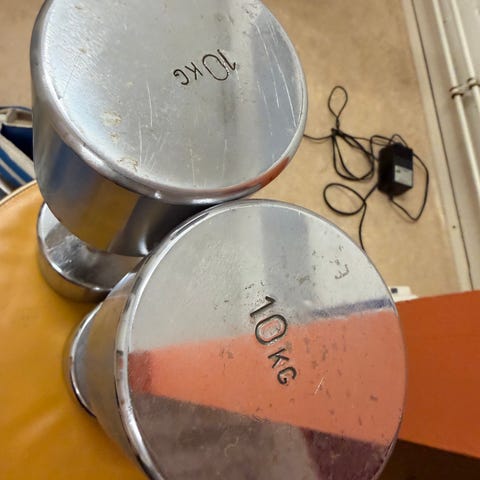 Settinä: 4kg ja 6kg kahvakuulat (kumitettuja), 2x 1,5kg käsipaino, 1x 2kg käsipaino, 2x1kg nilkkapaino ja 1x4kg nilkkapaino
