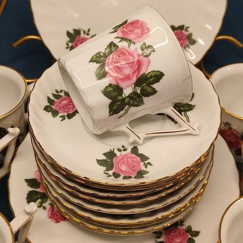 Kaksi Bavaria-kahvisettiä, täydellisessä kunnossa, valkoisen setin hinta -15€, setin hinta vaaleanpunaisella kukalla-7€