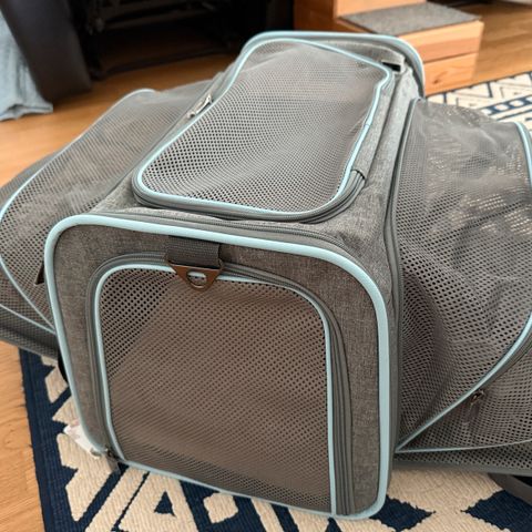 Petsfit-kantolaukku, joka on usean lentoyhtiön matkustamoon hyväksytty malli. Laukkua voidaan pitää sekä pysty- että makuuasennossa. Laukku voidaan myös taitella kasaan. Laukussa on useampi verkkokangaskohta hengittävyyden takaamiseksi, kiinnityshihna sisäpuolella ja pehmustettu, irroitettava ja pestävä sisäosa. Laukku voidaan kiinnittää vetolaukun kahvaan. Sopii myös kissojen kuljetukseen. Laukun mitat ovat 49 x 29 x 30,5 cm. Laukkua on käytetty kerran yhdellä lennolla.