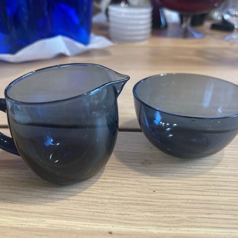 Myydään Iittalan sokerikko nr. 4552 ja kermakko nr. 4553 1950-luvulta. Suunnittelija Erkki Vesanto.