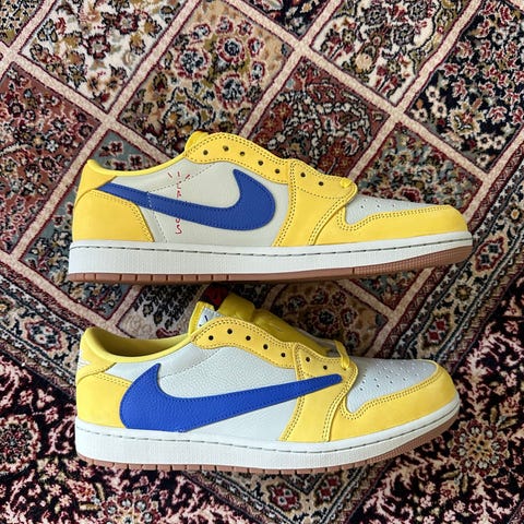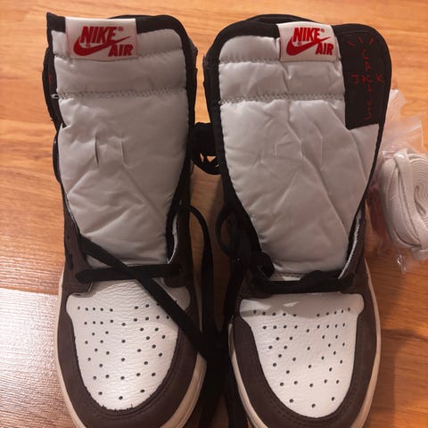 Myydään Nike Air Jordan 1 Retro High Travis Scott -kengät, koko 45,5 (US 11.5). Kengät ovat hyvässä kunnossa ja vain kevyesti käytetyt. Ikoninen malli käänteisellä Swoosh-logolla. Mukana alkuperäinen laatikko ja nauhat. Siistit ja hyvin pidetyt. Sopii hyvin keräilijälle tai arkikäyttöön.