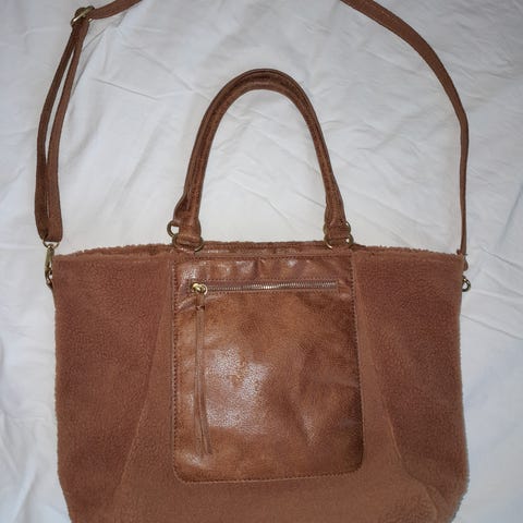 Myydään kuvien mukainen todella hyväkuntoinen Good Karma logolla teddykankainen olkalaukku. Merkki on Soya.